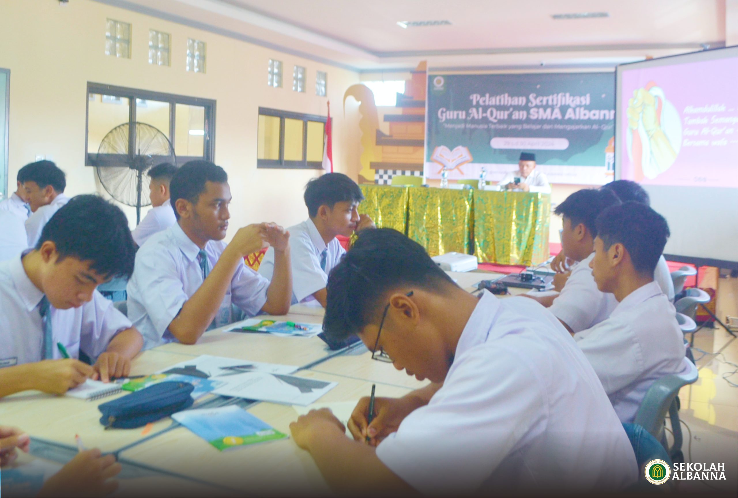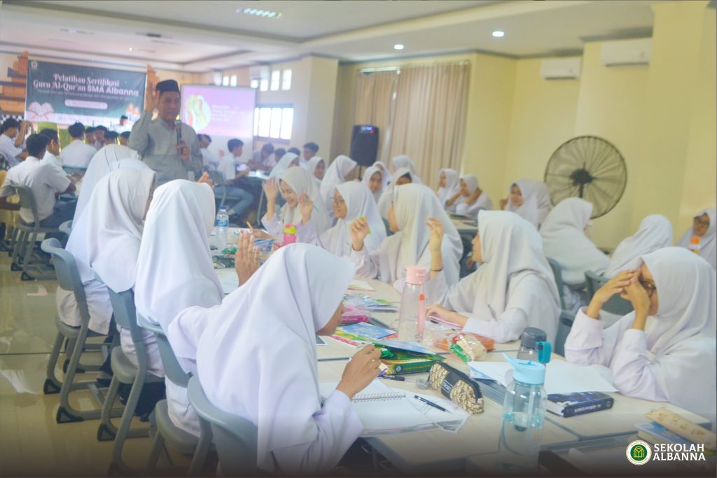 Program Sertifikasi Al Qur’an (PSGA) merupakan salah satu program unggulan oleh SMA Albanna, yang berkolaborasi dengan Wafa Indonesia untuk mencetak generasi pendidik Al Qur’an ter-sertifikasi resmi. Senin 29 s.d. 30 April 2024 lalu, SMA Albanna kembali melaksanakan program PSGA dimana program ini diikuti beberapa peserta didik terpilih, yaitu peserta didik yang telah menuntaskan syarat lulus Tilawah, Tajwid, dan Ghorib (TTG). Program PSGA dihadiri oleh Direktur Pendidikan Sekolah Albanna, Bapak Dr. Mashudi, S.Pd.,MM., yang sekaligus memberikan sambutan pembukaan di awal acara, dan Kepala Departemen bidang Al-Qur’an, Ibu Ernawatiningsih, S.Pd.