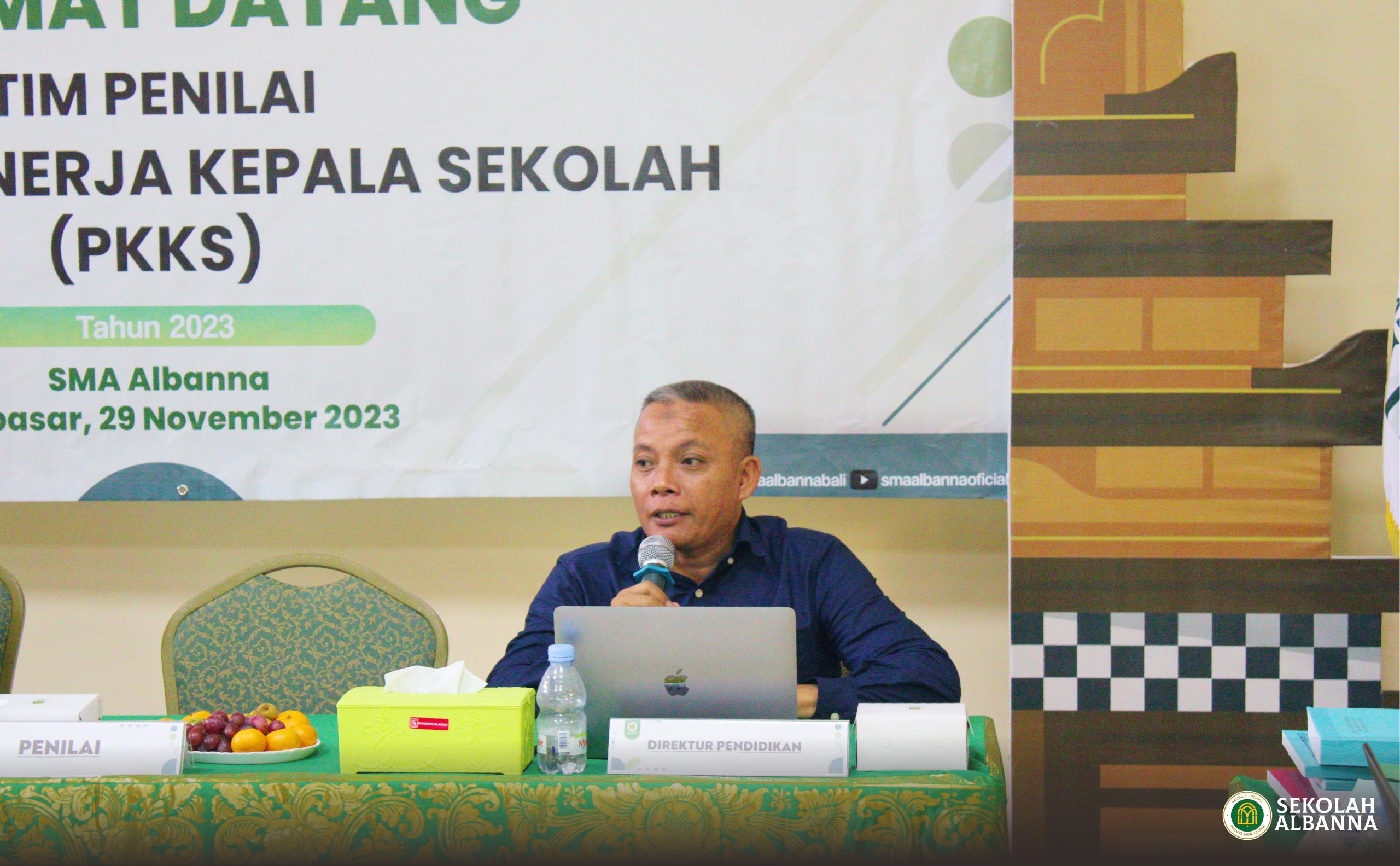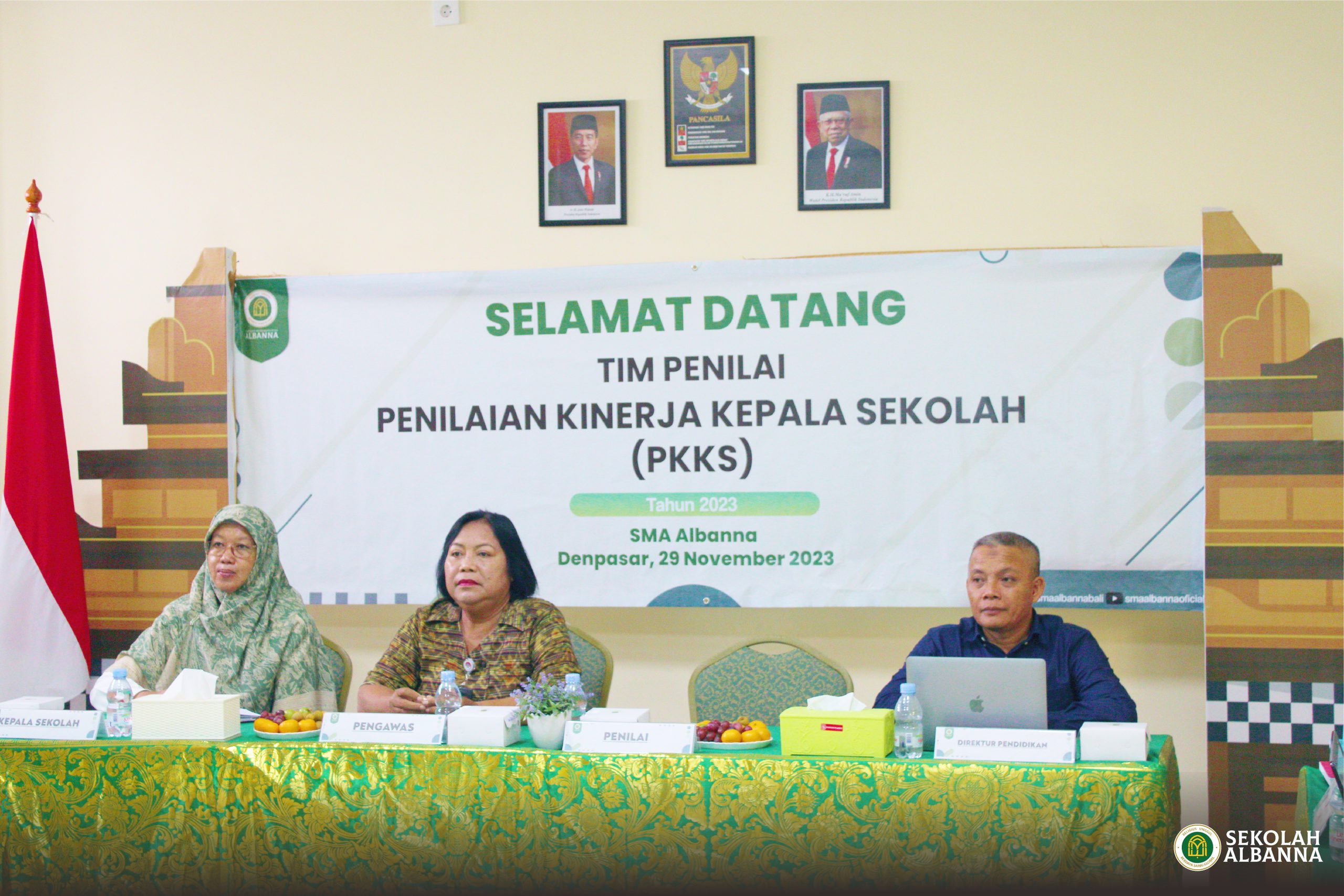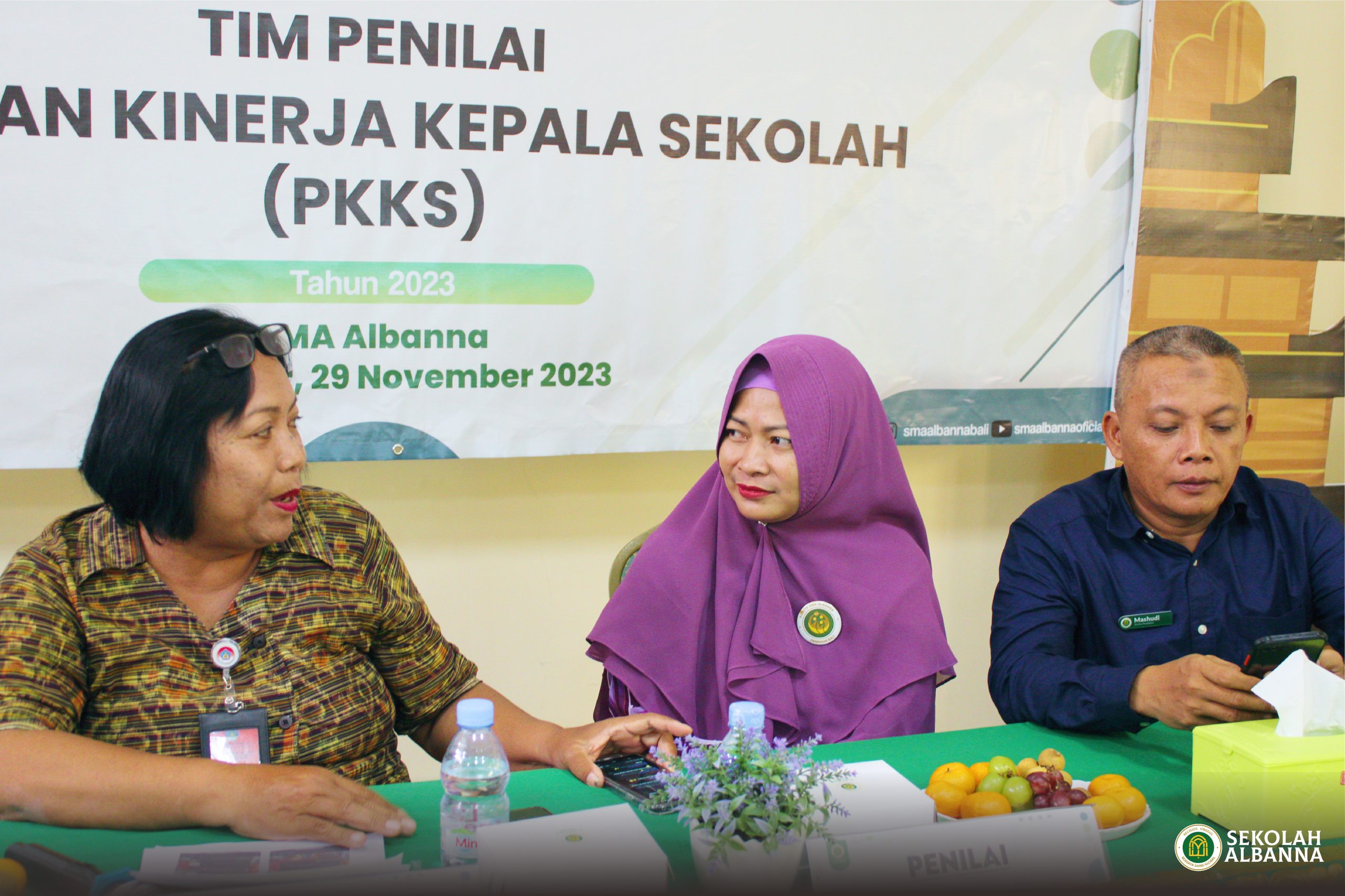 Kepemimpinan Kepala sekolah berperan penting sebagai tolak ukur kemajuan pendidikan. Evaluasi berkala perlu dilakukan sebagai upaya peningkatan kualitas sekolah. Kegiatan rutin tahunan, yakni Penilaian Kinerja Kepala Sekolah (PKKS) SMA Albanna pada Rabu, 29 November 2023 lalu,telah diselesaikan dengan tuntas. Kegiatan ini diikuti oleh beberapa tim guru SMA Albanna dibawah komando Kepala SMA Albanna, Ibu Ruri Subiantoro, S.Pt.,M.Pd, didampingi oleh Direktur Pendidikan Sekolah Albanna, Bapak Dr.Mashudi, S.Pd.,MM, Ketua Komite SMA Albanna, Ibu Gusti Ayu Putu Suriyani, dan turut hadir Pengawas Sekolah sekaligus penilai, Ibu Ni Luh Gede Suciati, S.Pd.,M.Hum. Fokus PKKS tahun 2023 adalah pengembangan diri dan orang lain, kepemimpinan pembelajaran, kepemimpinan manajemen sekolah dan kepemimpinan pengembangan sekolah. Kegiatan berjalan dengan baik, penilai mengapresiasi kinerja sekolah dan berharap SMA Albanna semakin maju, berkembang dan berkualitas sehingga menjadi pilihan favorit masyarakat.